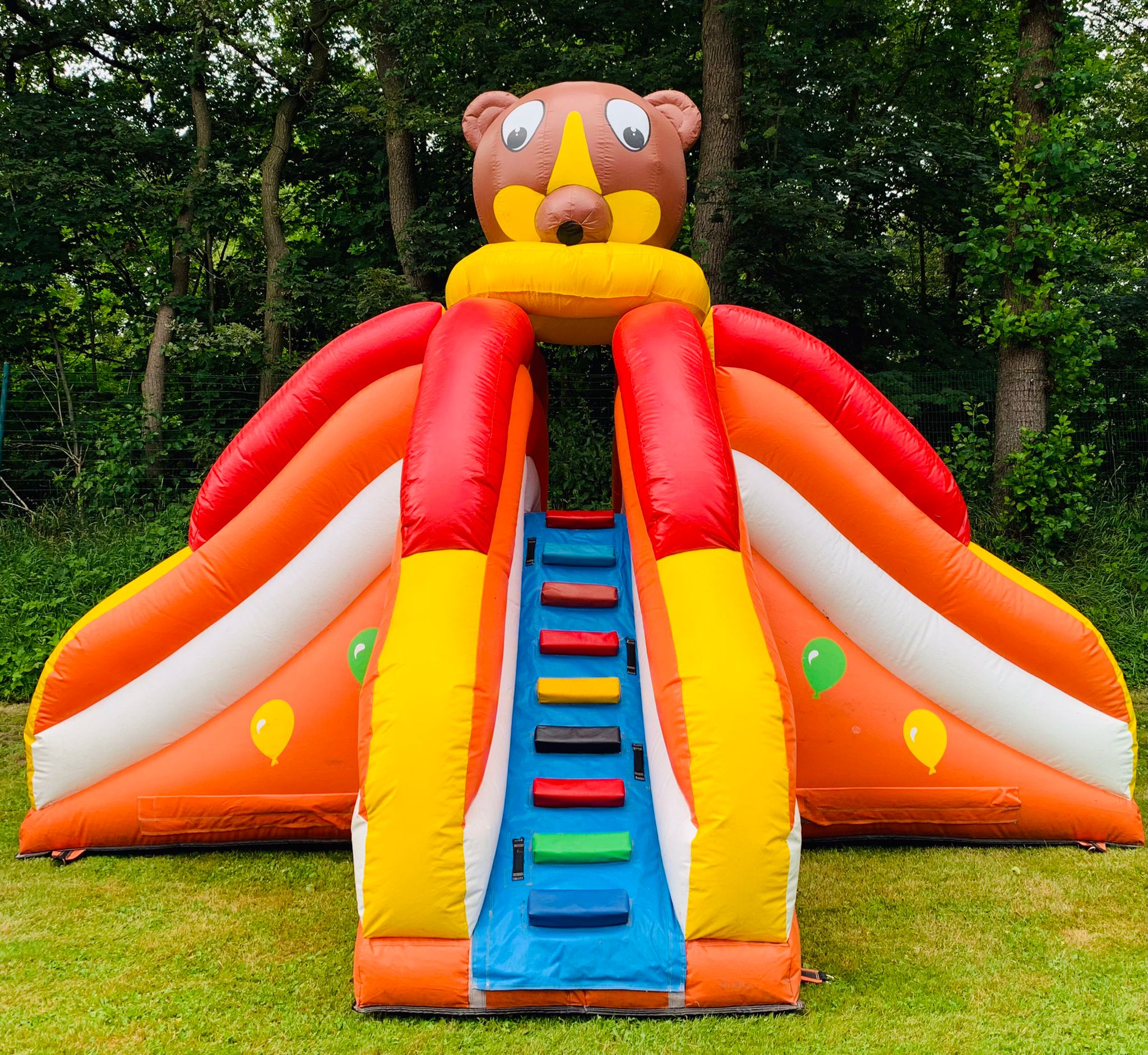 Mieten Sie für einen Kindergeburtstag, Ihrer Hochzeit, Ihrer privaten oder gewerblichen Veranstaltung eine Hüpfburg von uns! Immer ein Highlight bei den Kindern. Sie erhalten von uns eine Einweisung in die Handhabung für den sicheren Betrieb der Hüpfburg. Die Aufsicht eines Erwachsenen muss stets gewährleistet sein. Für die Abholung wird ein PKW mit Anhänger oder ein Sprinter etc. benötigt. Haben Sie keine Zeit oder kein passendes Fahrzeug zur Verfügung? Wir bieten ein All-Inklusiv-Service. Sie stellen lediglich den Platz und eine Steckdose - und den Rest übernehmen wir.  Der Auf- und Abbau ist kostenlos. Bei schlechtem Wetter kann die Hüpfburg kostenlos storniert werden.“