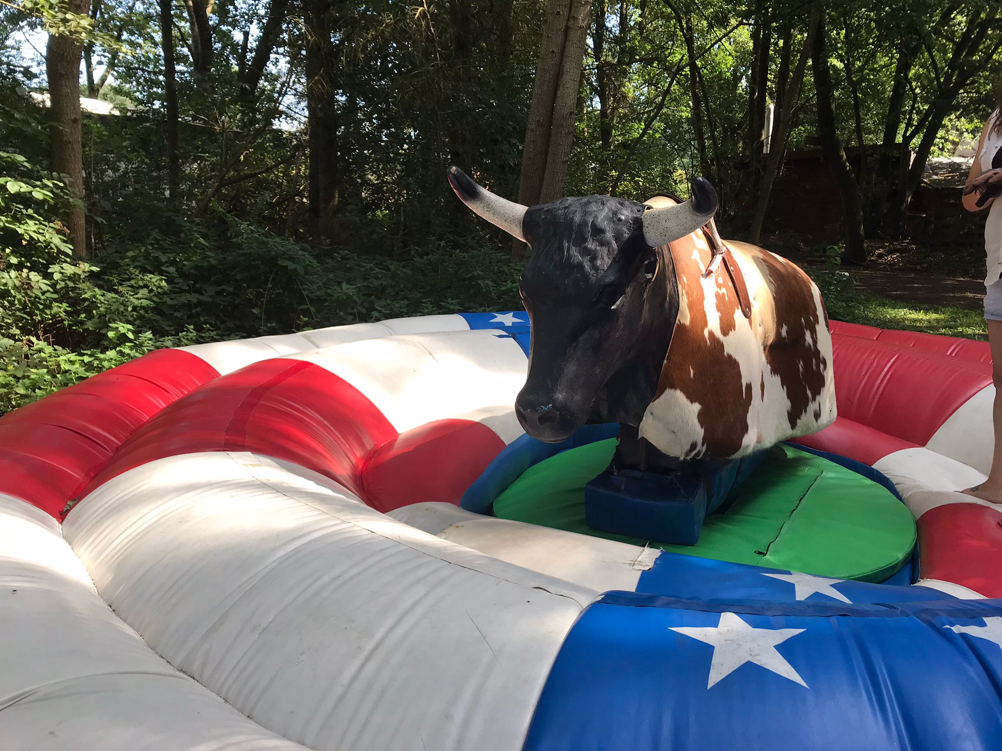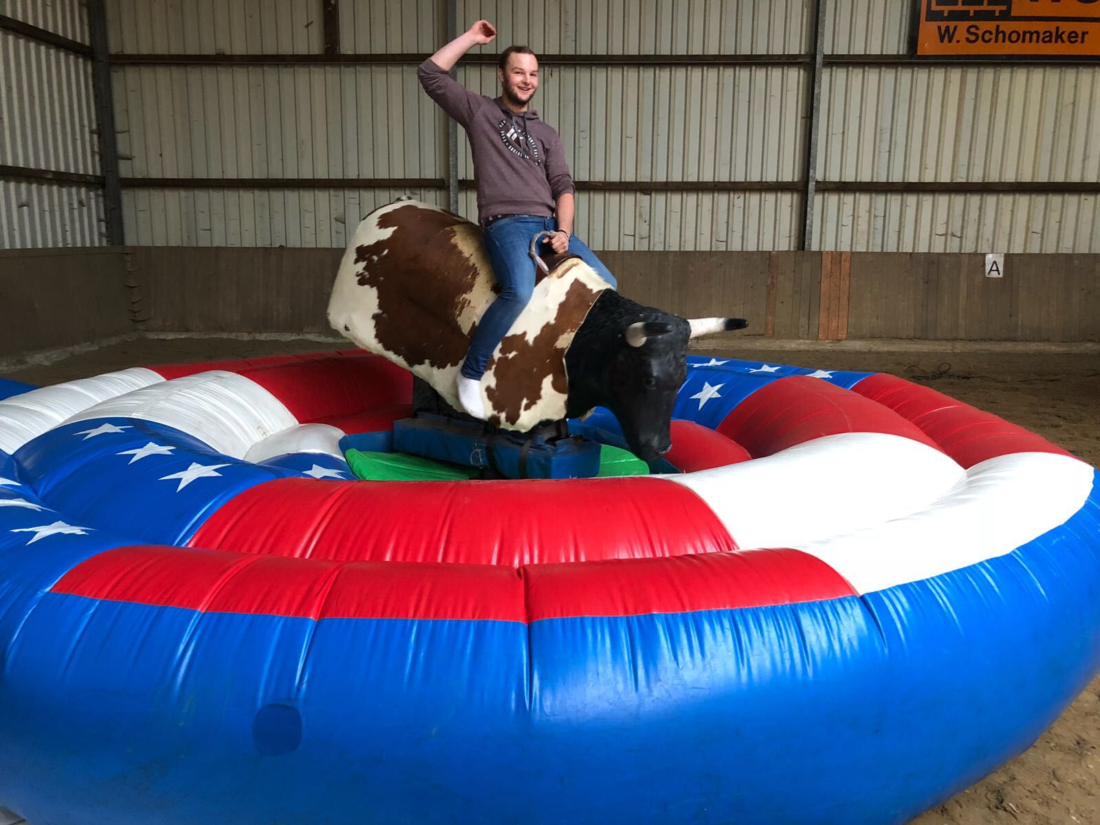 „Sind Sie bereit, den Wilden Westen zu reiten? Dann holen Sie sich bei uns den ultimativen Kick auf unserem Bullen „Theo“! Unser Bull-Riding bietet Ihnen den Nervenkitzel des Bullenreitens, ohne dass Sie sich Gedanken über kopfüber landende Cowboys machen müssen. Also, ziehen Sie Ihre Cowboystiefel an und reiten Sie auf, um Ihre Kräfte zu messen.“